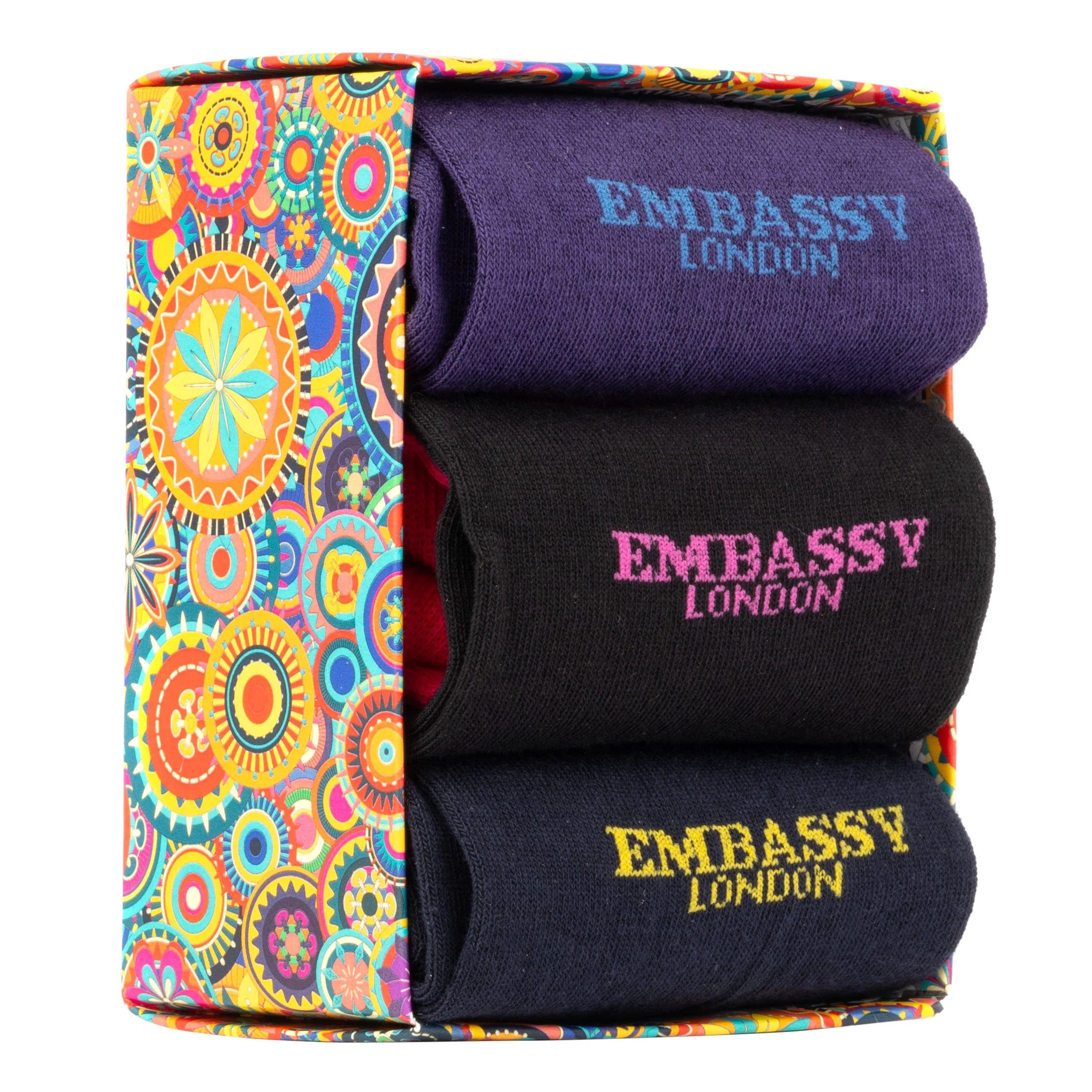 Socktopus - Embassy Mix - Men's 3 pack cotton socks size UK 6 to 12 in brand emblem—